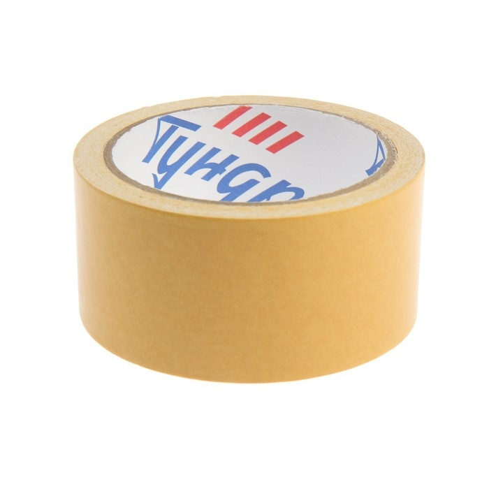 Лента двусторонняя ТУНДРА, клейкая, полипропиленовая, белая основа, 90 мкм, 48 мм х 10 м