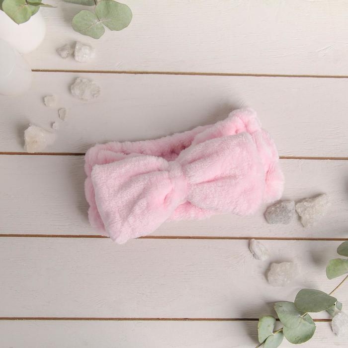 Повязка для умывания из микрофибры Доляна «Бантик», цвет розовый