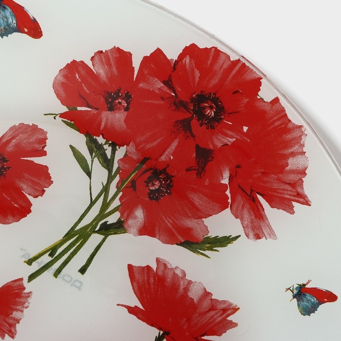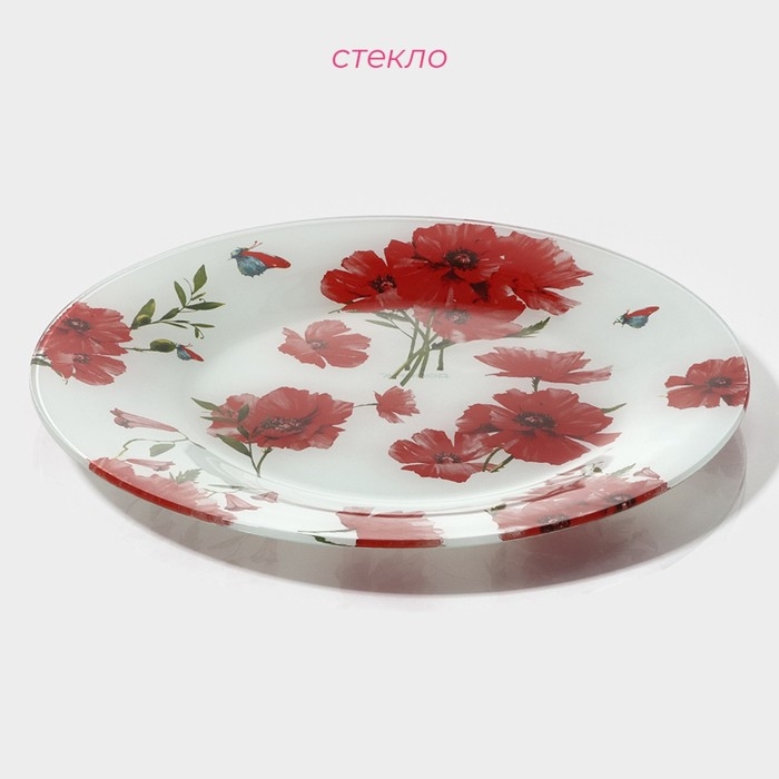Тарелка стеклянная обеденная Доляна «Красные маки», d=23 см