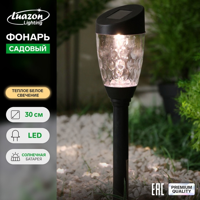 Садовый светильник на солнечной батарее «Трапеция скошенная», 6 × 36 × 6 см, 1 LED, свечение тёплое белое