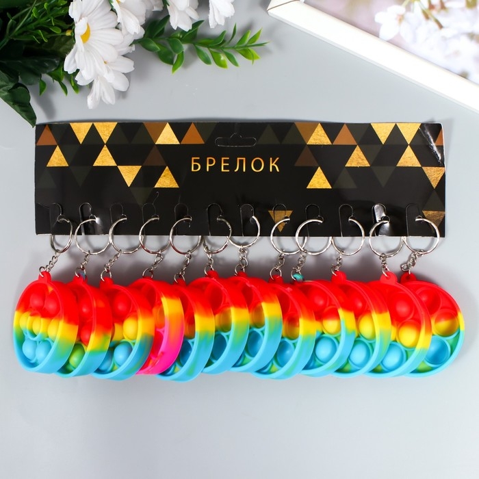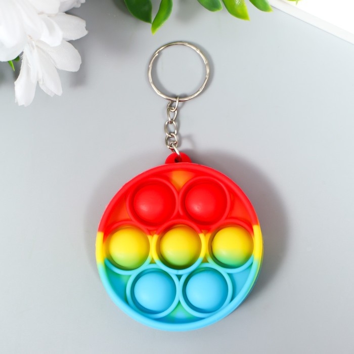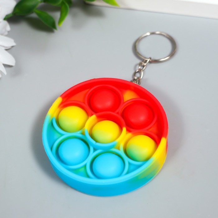 Брелок резина антистресс (бесконечная пупырка) "Круг разноцветный" МИКС 5,5х5,5х1,3 см