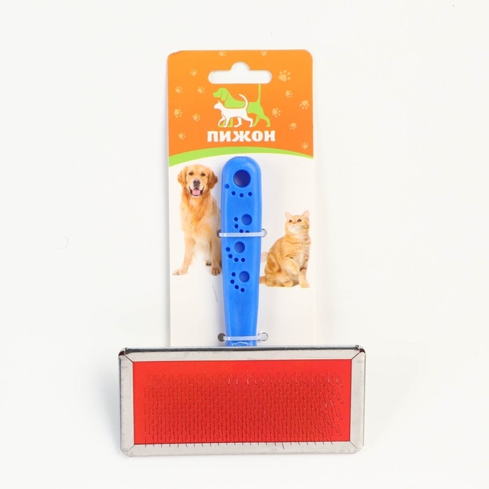 Изделие удобно лежит в руке и не причиняет дискомфорта животному при вычесывании.