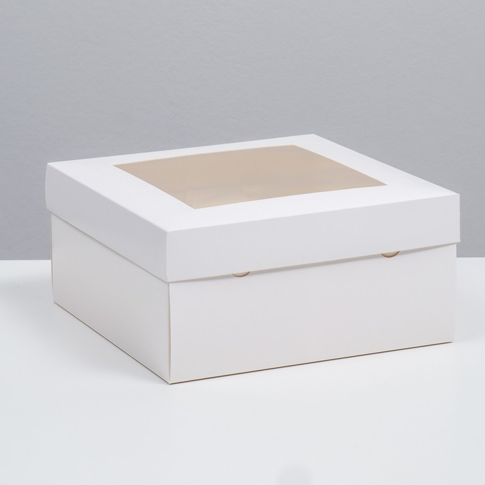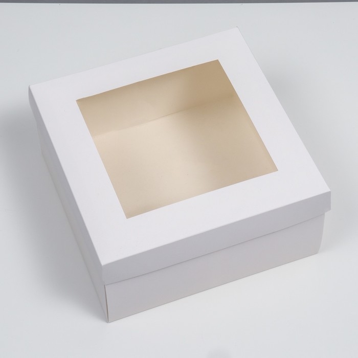 Коробка складная, крышка-дно, с окном, белая, 25×25×12 см