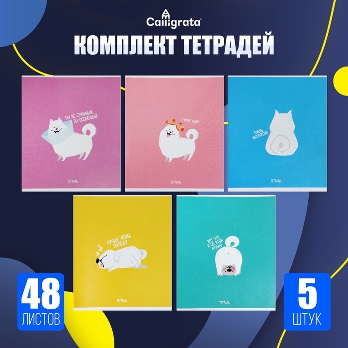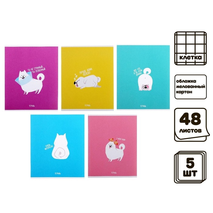 Комплект тетрадей из 5 штук, 48 листов в клетку Calligrata "Хорошо быть собакой", обложка мелованный картон, блок офсет