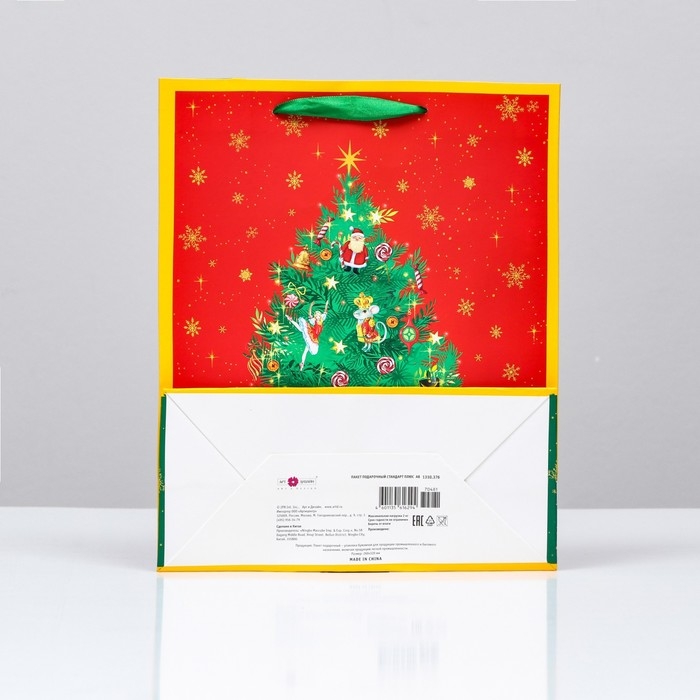 Новогодний подарочный пакет с ярким, красочным рисунком создаст праздничное настроение.