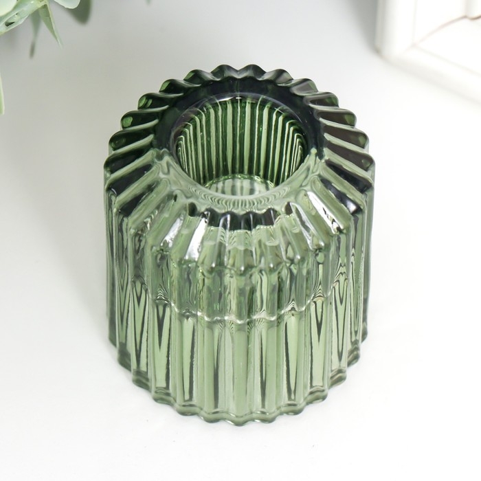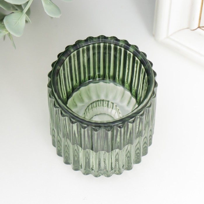 Стеклянный подсвечник на 1 свечу «Долли», d=2.5 см, 4 см, зелёный, 6×5×5 см