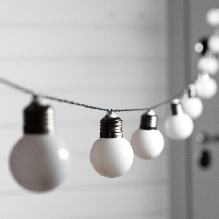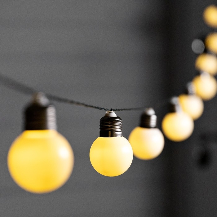 Гирлянда «Нить», 2.7 м, с насадками в виде белых шаров, IP44, 10 LED, 8 режимов, солнечная батарея, тёмная нить, свечение тёплое белое