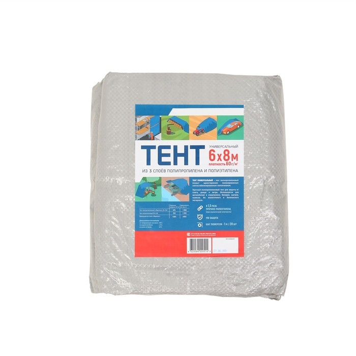 Тент защитный, 8 × 6 м, плотность 60 г/м², УФ, люверсы шаг 1 м, тарпаулин, серый