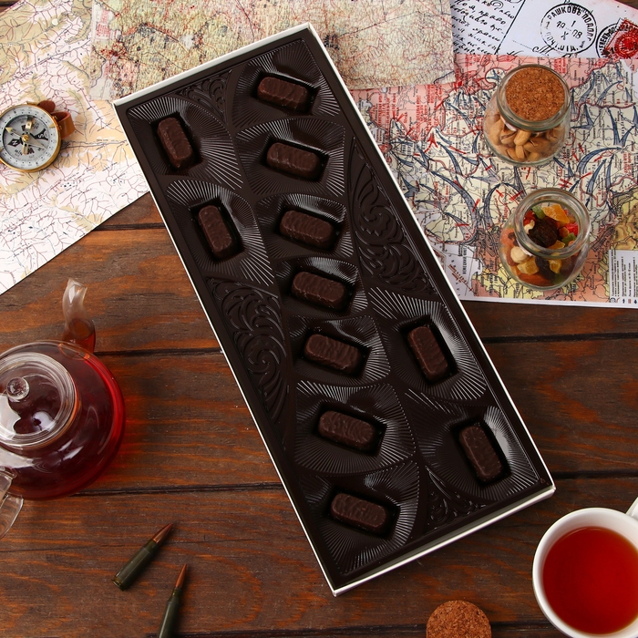 Небольшие шоколадные конфеты в удобной упаковке подарят радость любому, кто любит сладости. Кроме того, данный презент упакован в стильную коробку с символами праздника Дня Победы, которую можно презентовать как готовый подарок, не тратя время на упаковку. Если вы ищете подарок для близких, то набор шоколадных конфет - отличный выбор. Удивите и порадуйте этим оригинальным подарком, который точно не останется незамеченным.