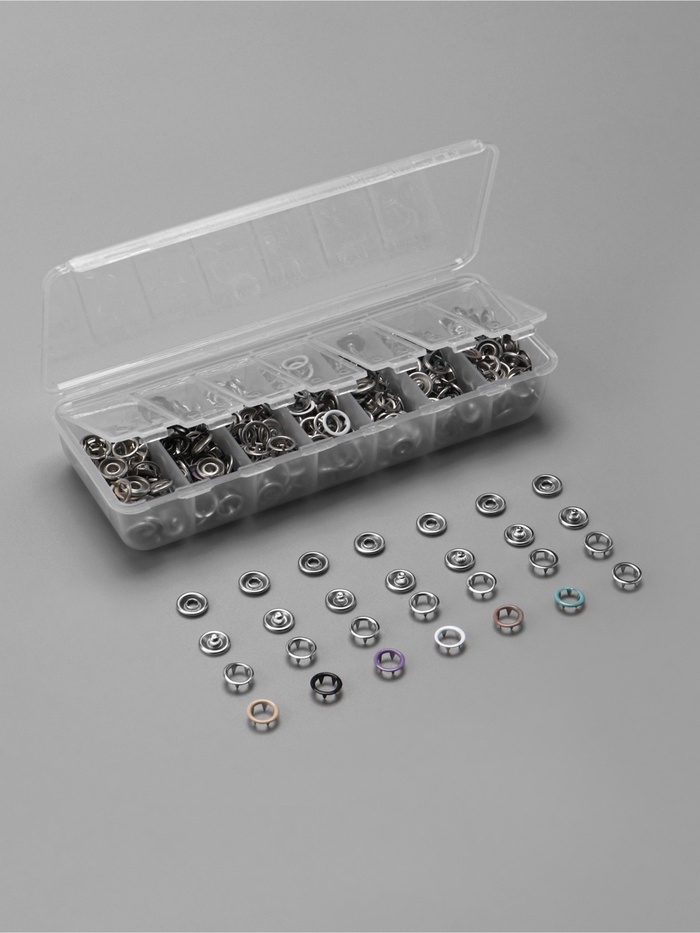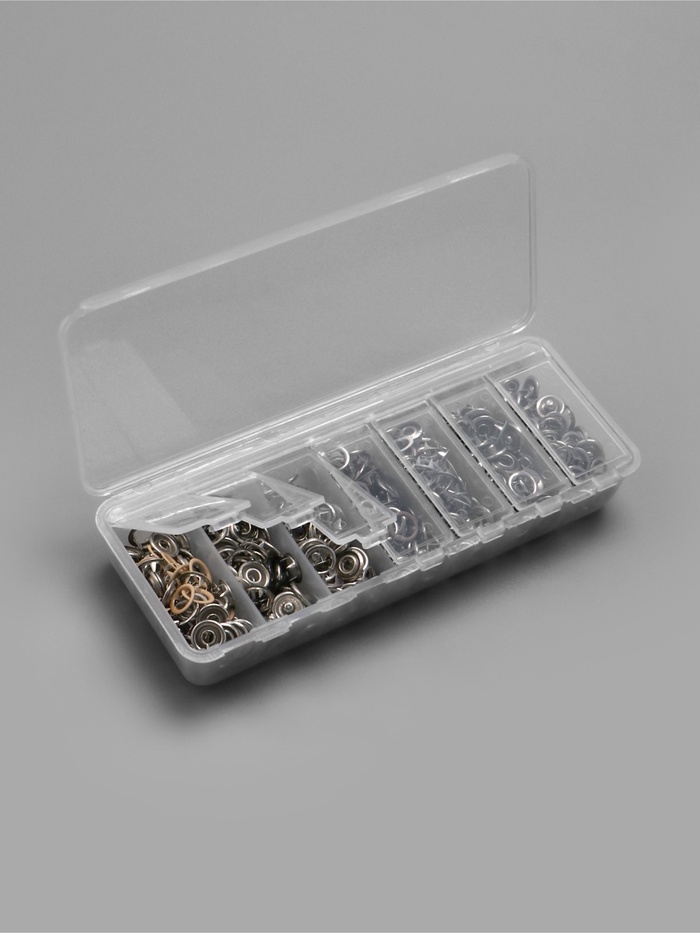 Кнопки рубашечные, открытые, d=9.5 мм, 140 шт., в пластиковом органайзере