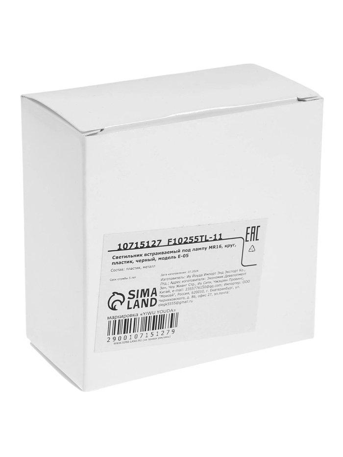 Светильник встраиваемый под лампу MR16, круг, пластик, черный