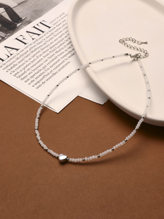 Чокер «Сердце» бусина №4, цвет белый в серебре, 35 см