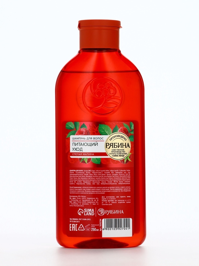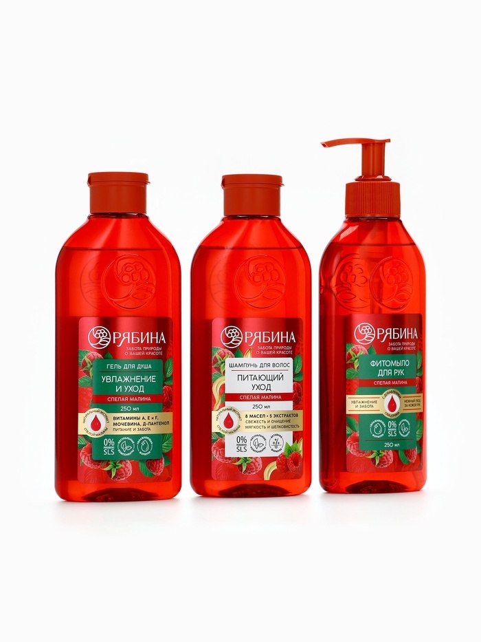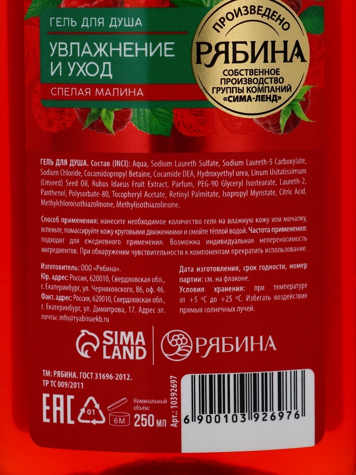Гель для душа, увлажнение и уход, аромат малины, 250 мл, Рябина
