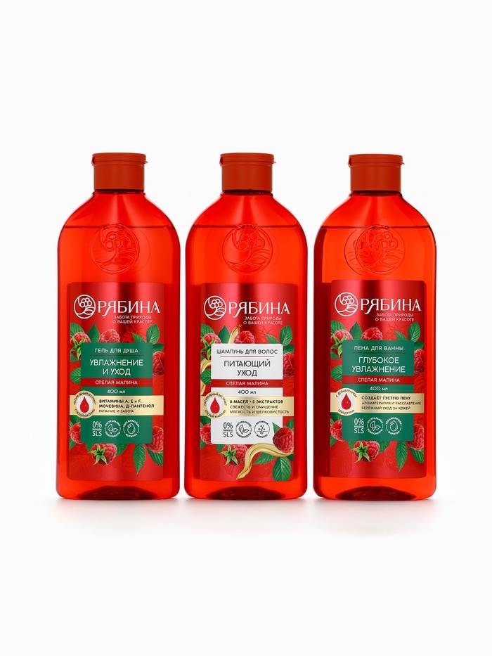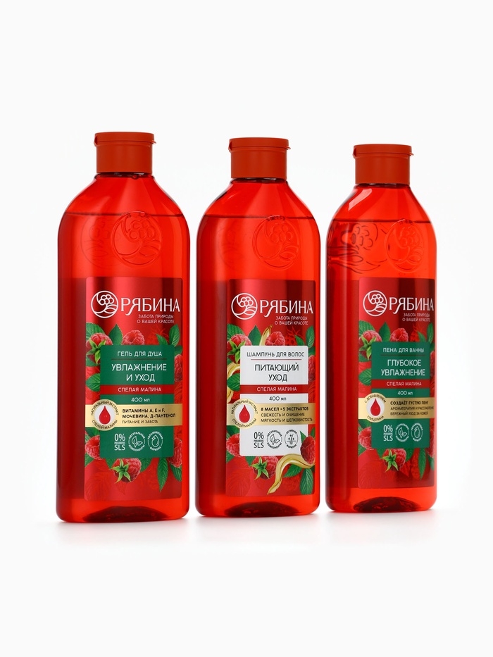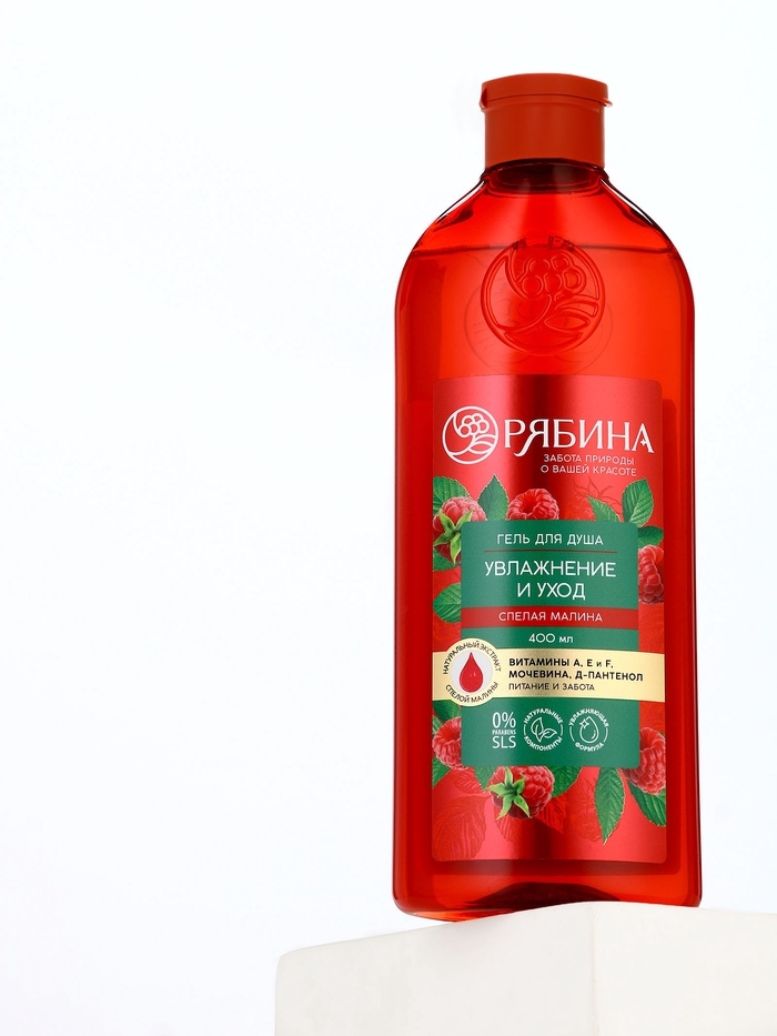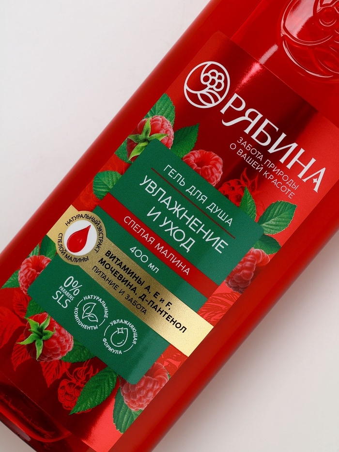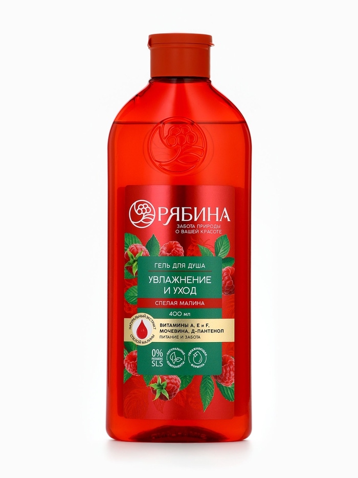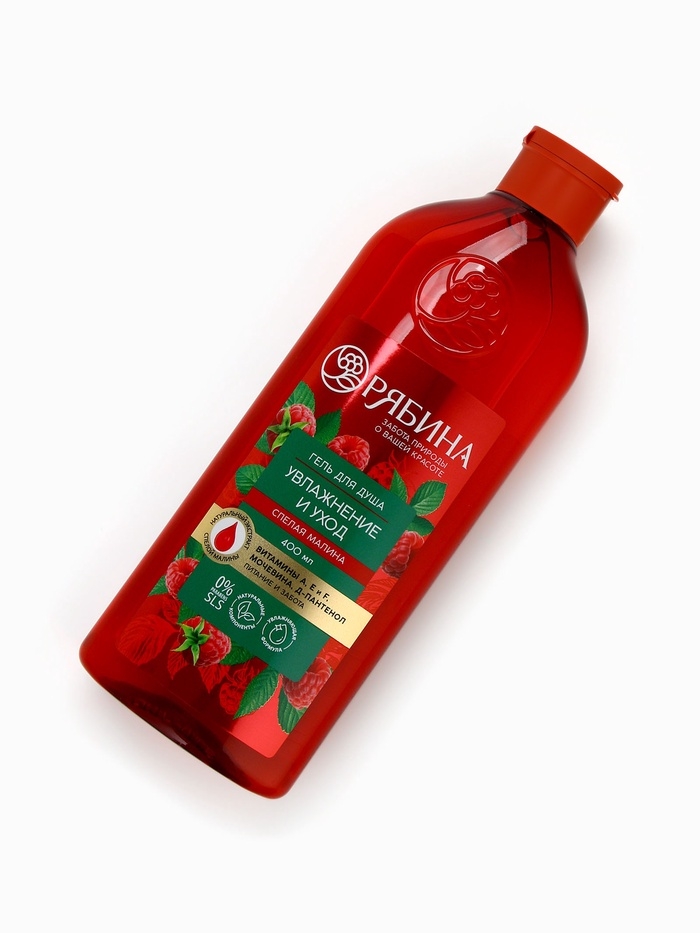 Гель для душа, увлажнение и уход, аромат малины, 400 мл, Рябина