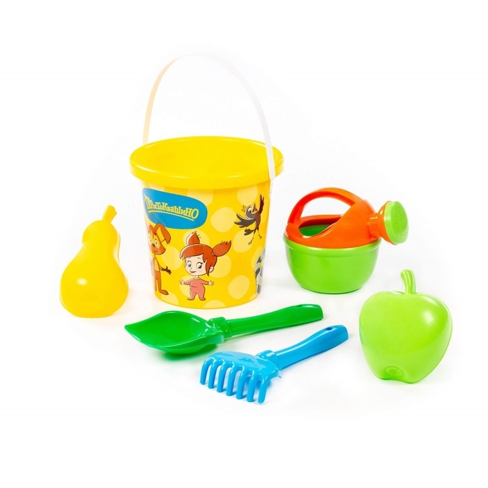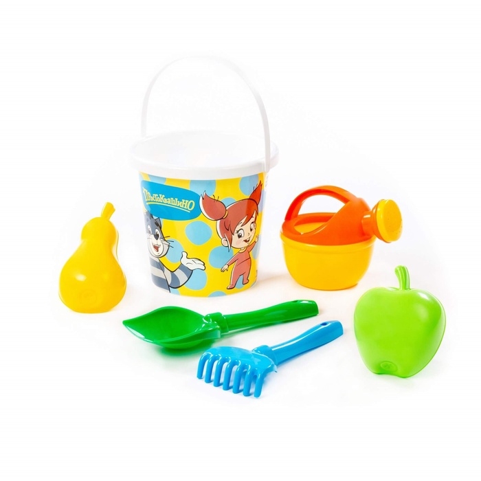 Песочный набор игрушек «Простоквашино», 6 предметов: ведро, лопатка, грабельки, формочки, лейка, МИКС