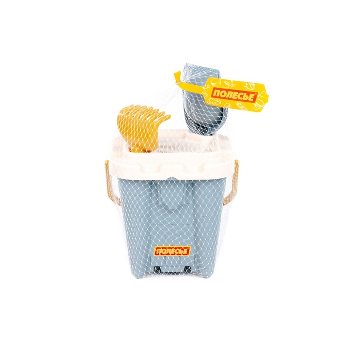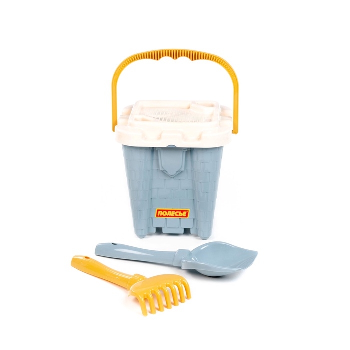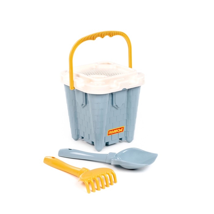 Песочный набор игрушек, 4 предмета: ведро-замок, ситечко, лопатка, грабельки, серо-голубой