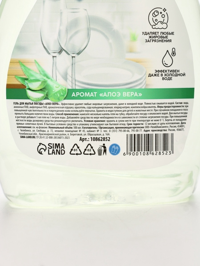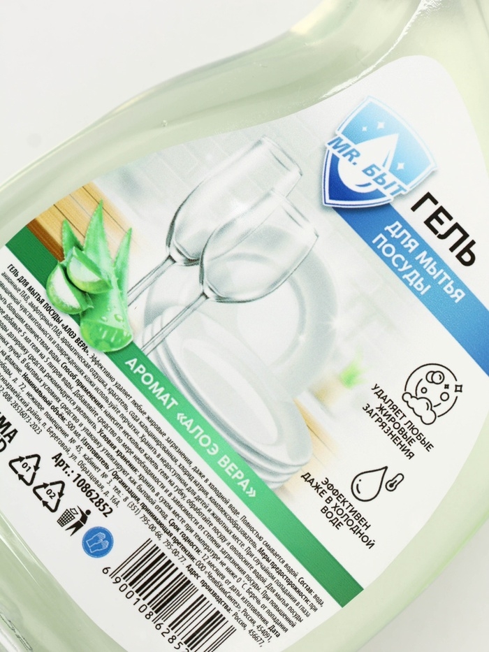 Mr.Быт Гель для мытья посуды, 500 мл, аромат алоэ вера