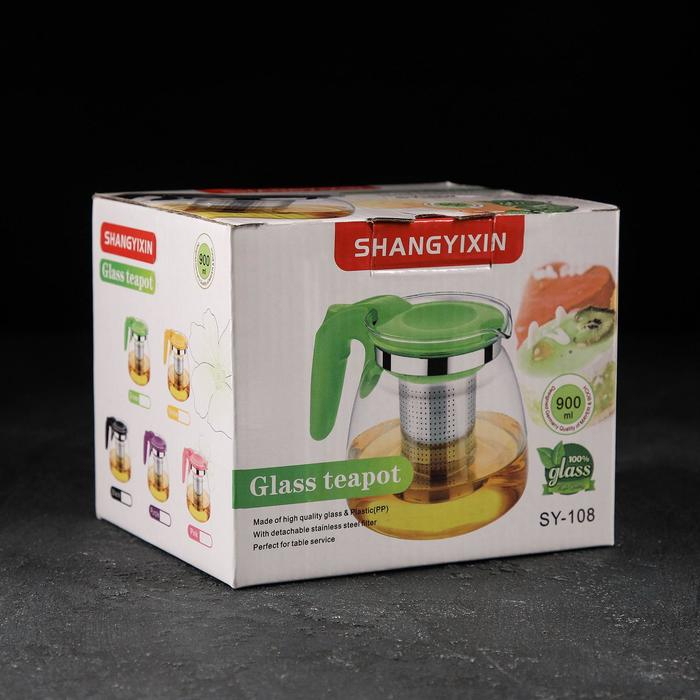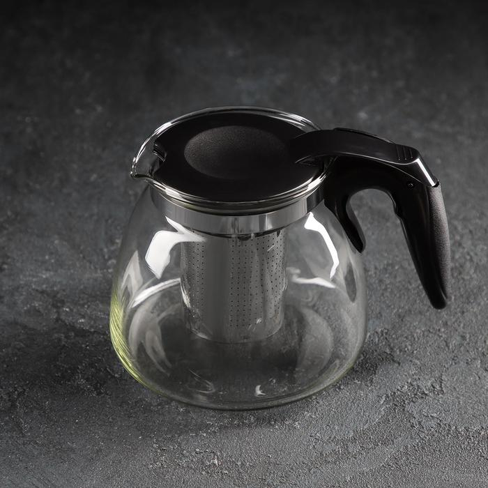 Чайник стеклянный заварочный «Джулиан», 900 мл, с металлическим ситом, цвет чёрный
