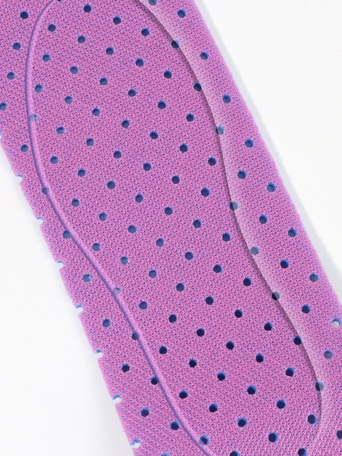 Дышащие стельки в рулоне, выполненные в фиолетово-розовых тонах, станут универсальным решением для создания индивидуального комфорта в обуви. Благодаря гибкости материала и возможности вырезания, они легко адаптируются под любой размер и форму обуви, обеспечивая оптимальную поддержку стопы.