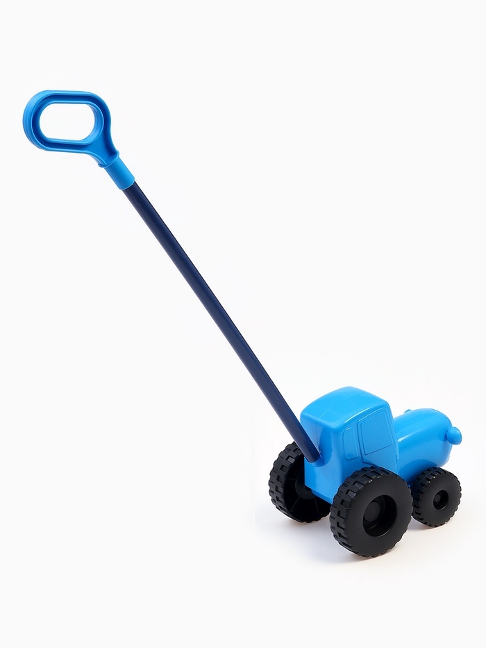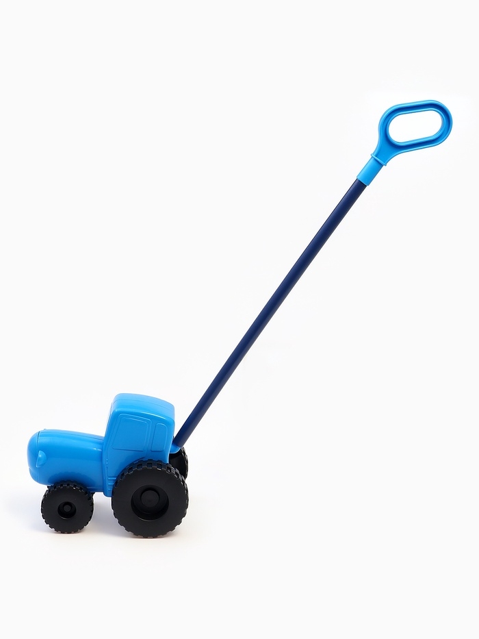Пластиковая каталка «Синий трактор» с ручкой — это яркая игрушка, которая станет любимой машинкой малыша. Простая в использовании и надёжная конструкция делает её идеальным выбором для активных игр на улице или дома.