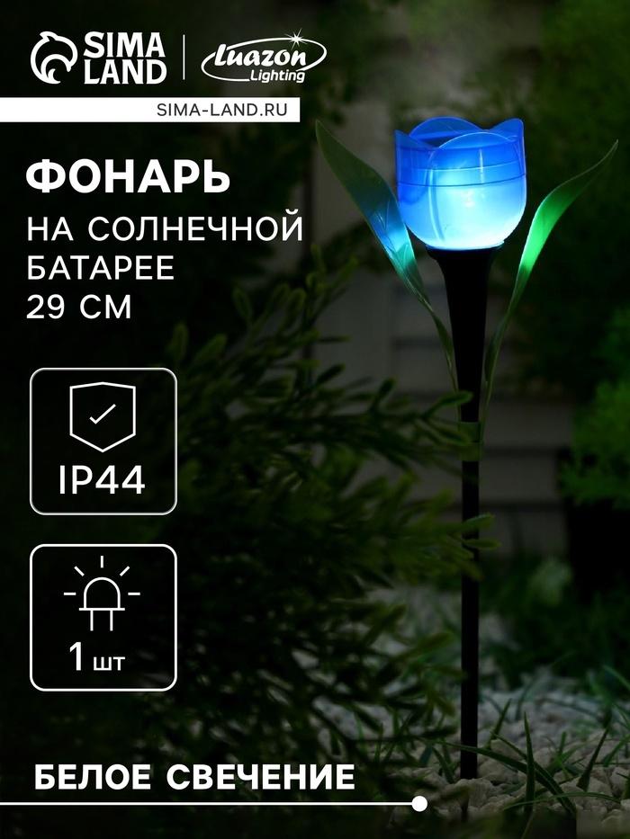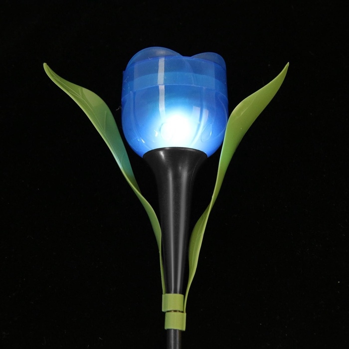 Садовый светильник на солнечной батарее «Тюльпан синий», 5×29×4 см, 1 LED, свечение белое