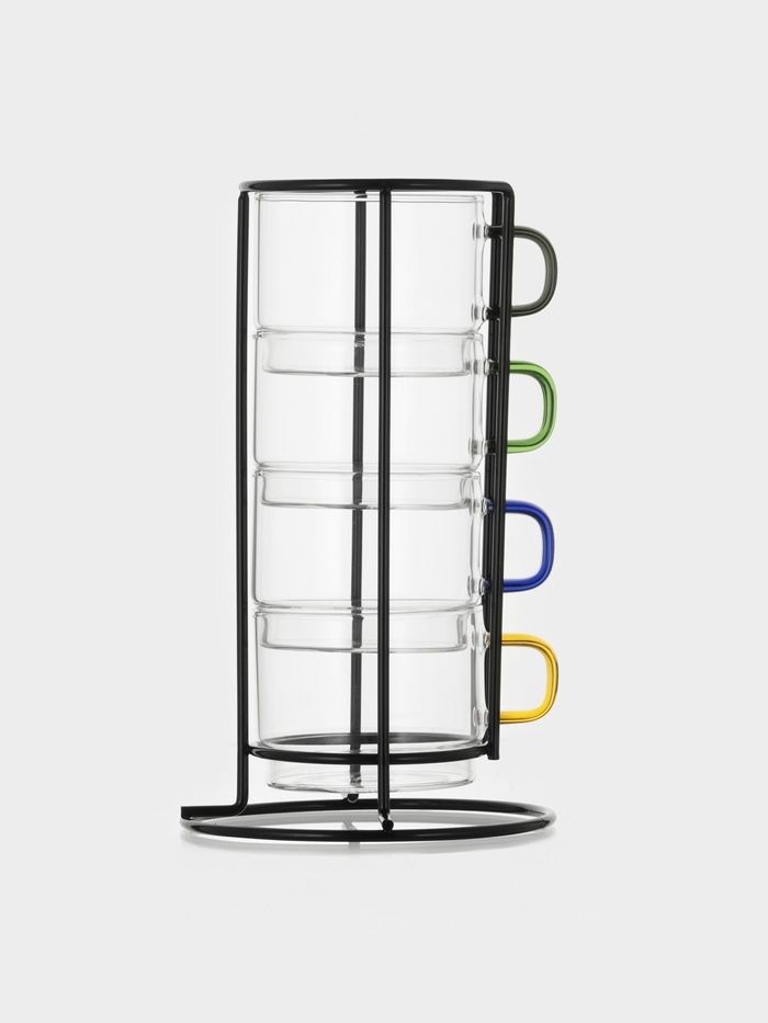 Набор стеклянных кружек на металлической подставке "Квартет", 4 шт, 250 мл