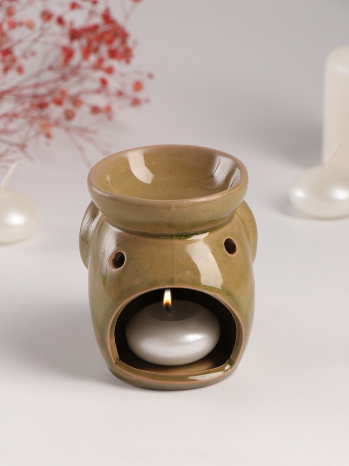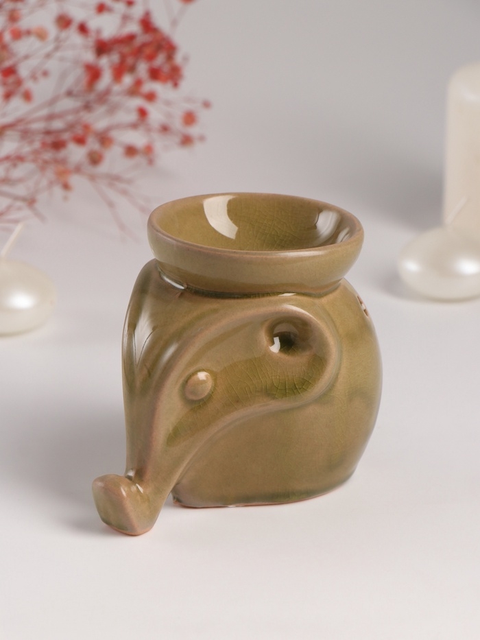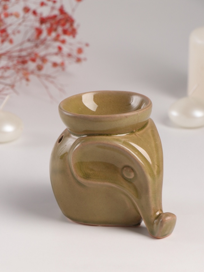 Аромалампа керамика "Слонёнок" тёмно-оливковая 8х10х9 см