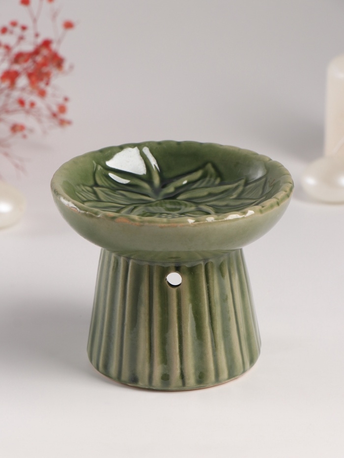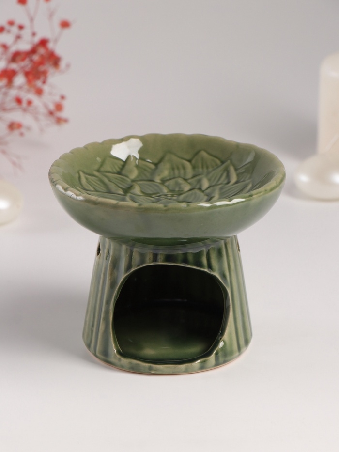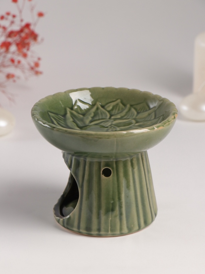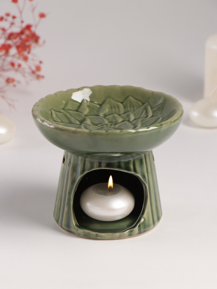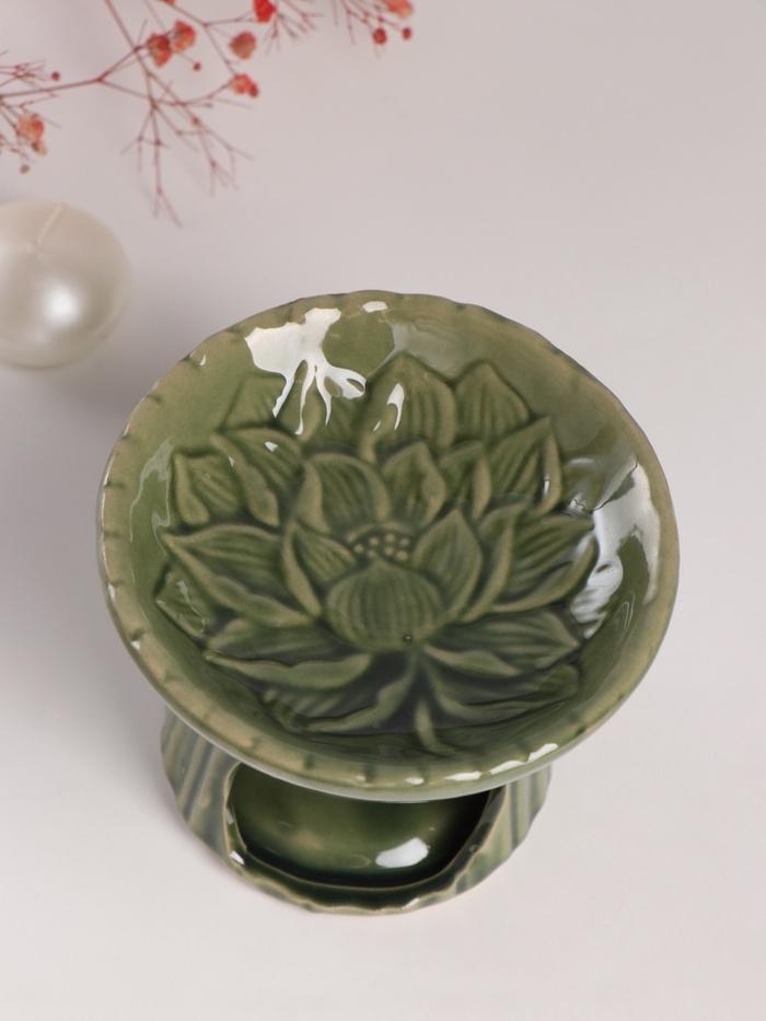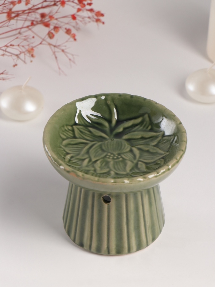 Аромалампа керамика "Лотос" тёмно-зеленая 11,4х11,4х9 см
