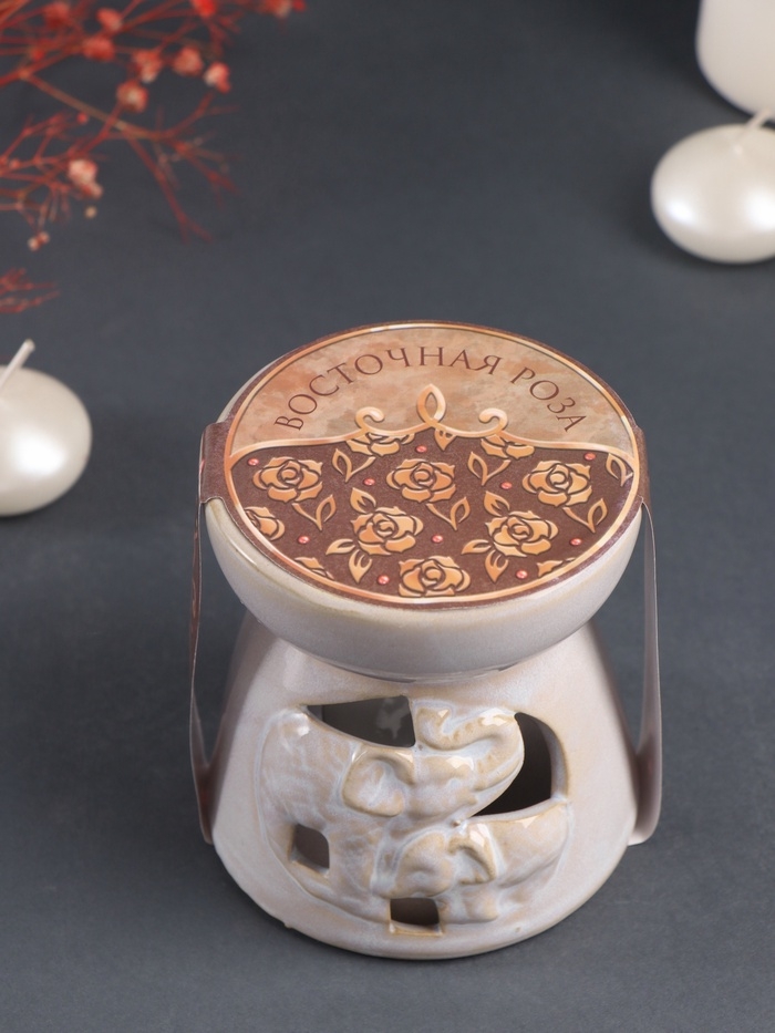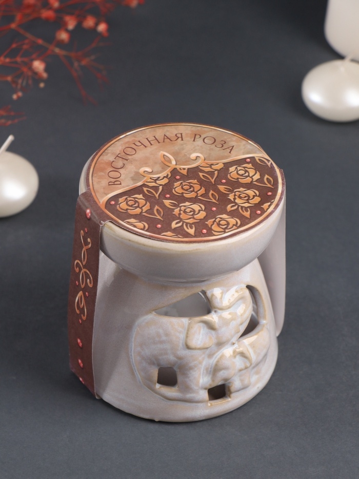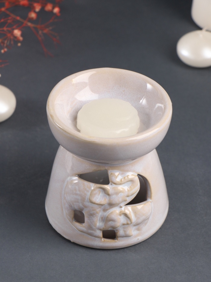 Набор: аромалампа для эфирных масел, мелтсы из воска ароматические «Слон со слонёнком», светлый беж, 10×10×9 см