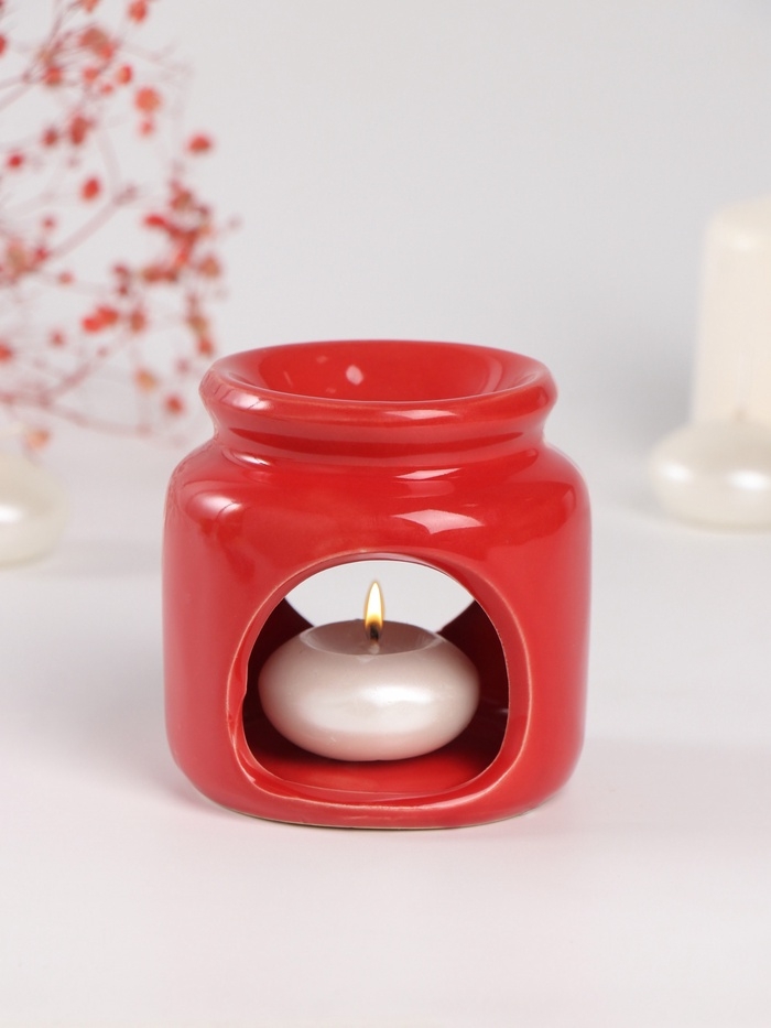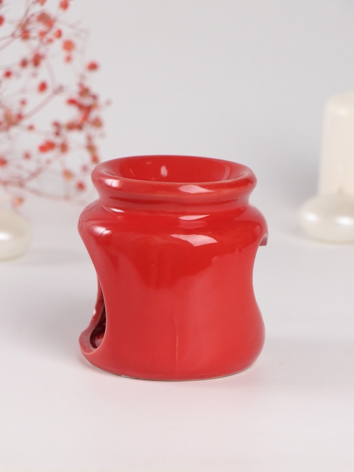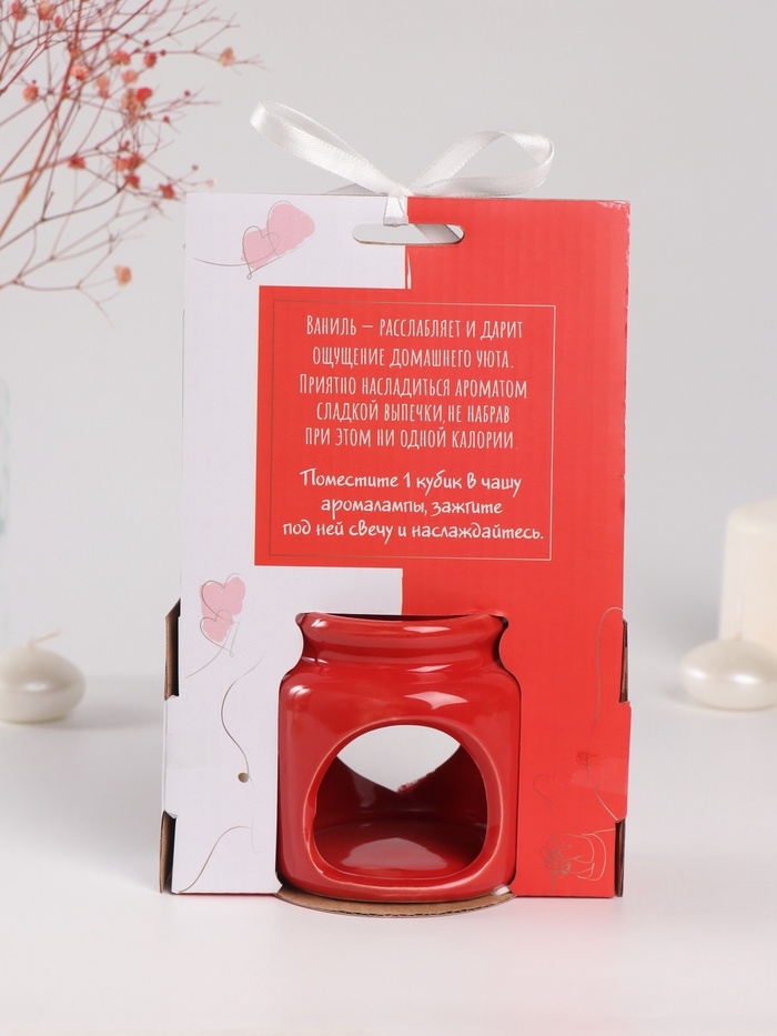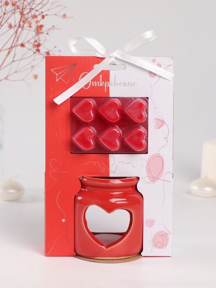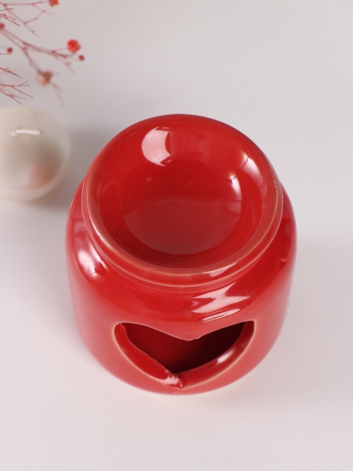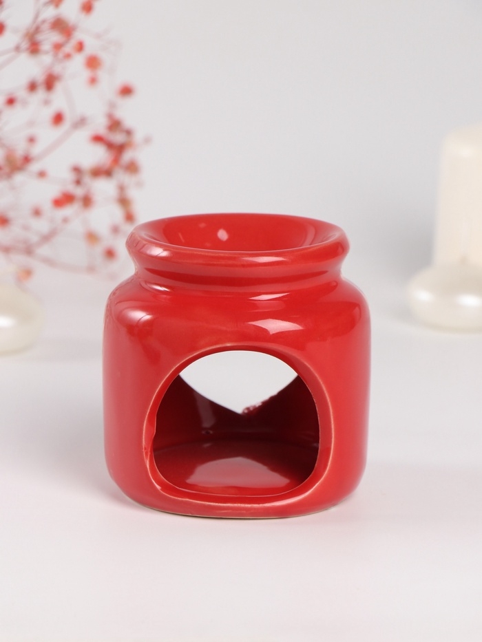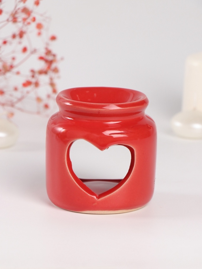 Аромалампа керамика + ароматический воск "Сердце" красная 7,5х7,5х8 см