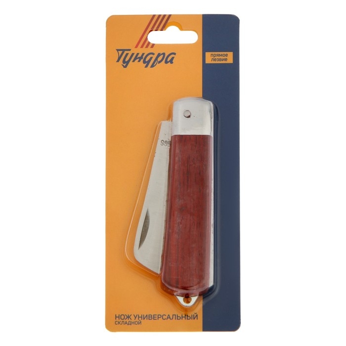 Нож универсальный складной ТУНДРА, деревянная рукоятка, прямое лезвие, нержавеющая сталь