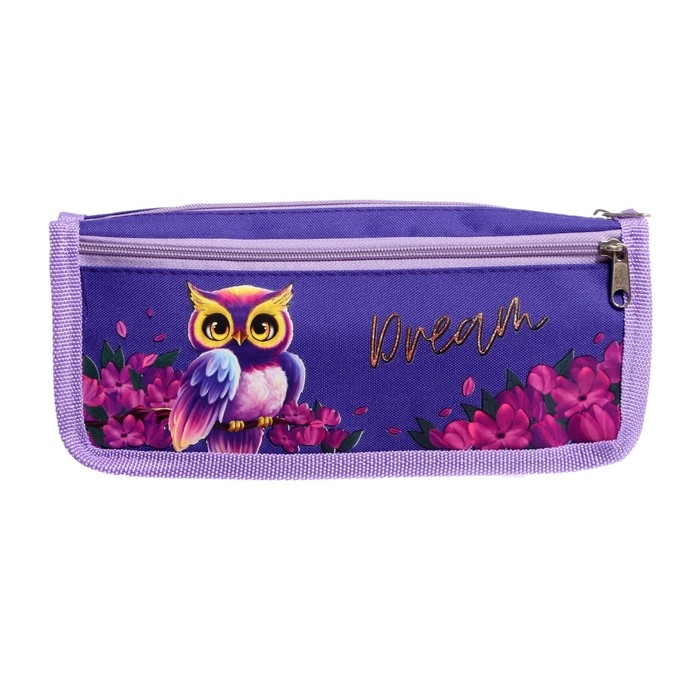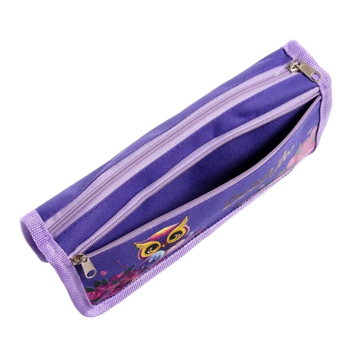 Пенал школьный "Совы", на молнии, МИКС
