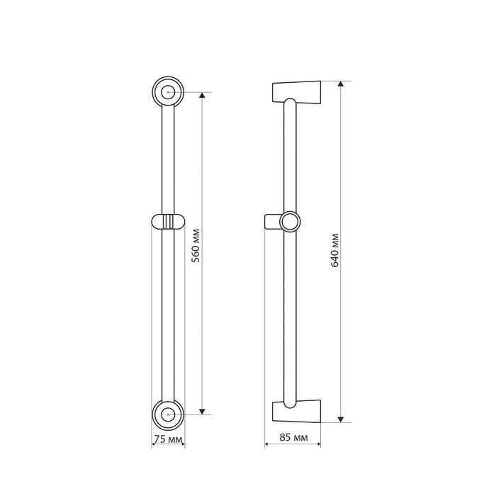 Подходит для установки в душевых кабинах и на стене над стационарными ваннами. Для монтажа штанги на стене потребуется два отверстия. Изделие предполагает стационарное крепление.
