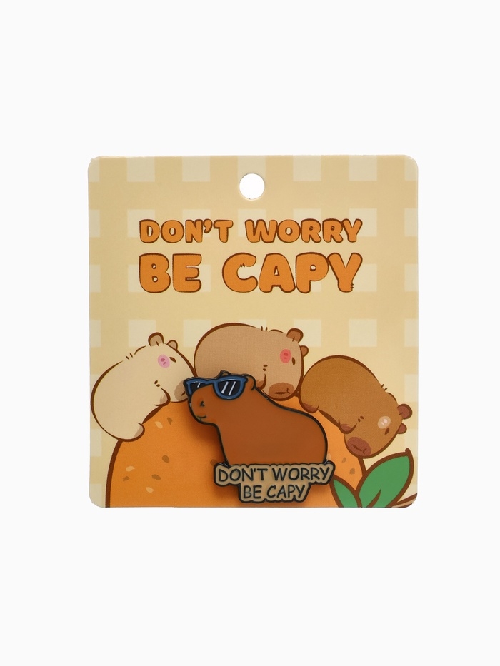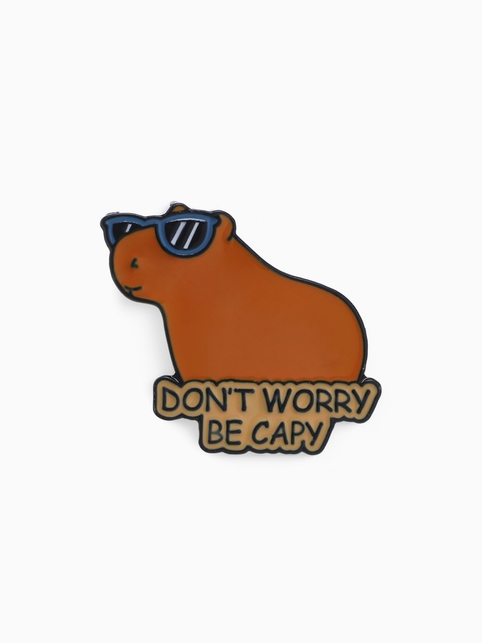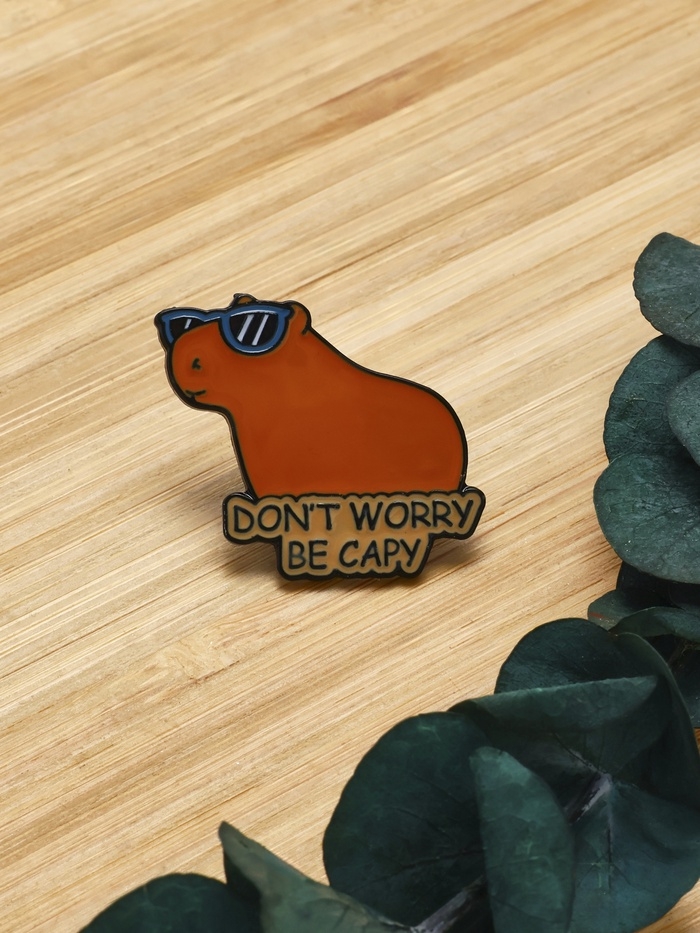 Значок «Капибара» не волнуйся, оранжевый в чёрном металле