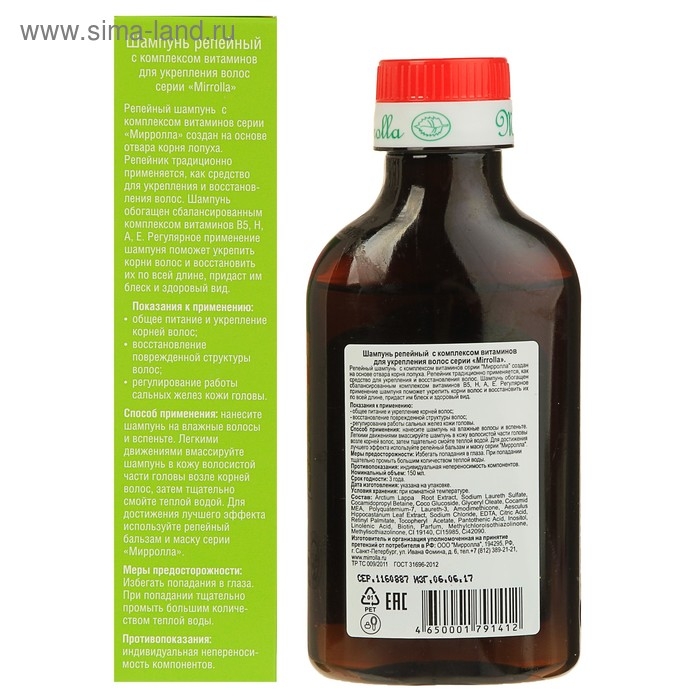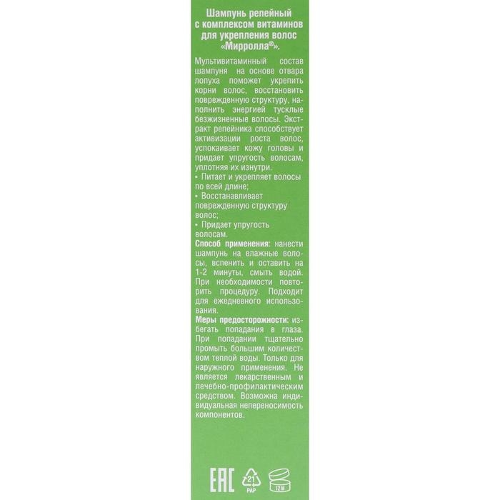 Шампунь репейный Mirrolla, комплекс витаминов для укрепления волос, 150 мл