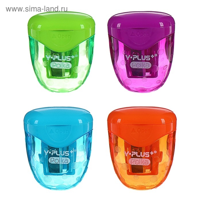 Точилка 1-отверстие, Y-Plus POLKA, с контейнером, МИКС