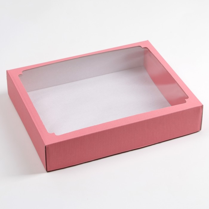 Коробка сборная крышка-дно, розовая, с окном, 29,5 х 23,5 х 6 см
