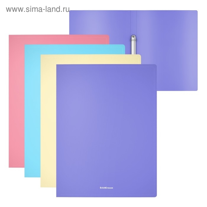 Папка на 2 кольцах А4, ErichKrause Matt Pastel, 24 мм, 600 мкм, пастель матовая, 4 вида, микс