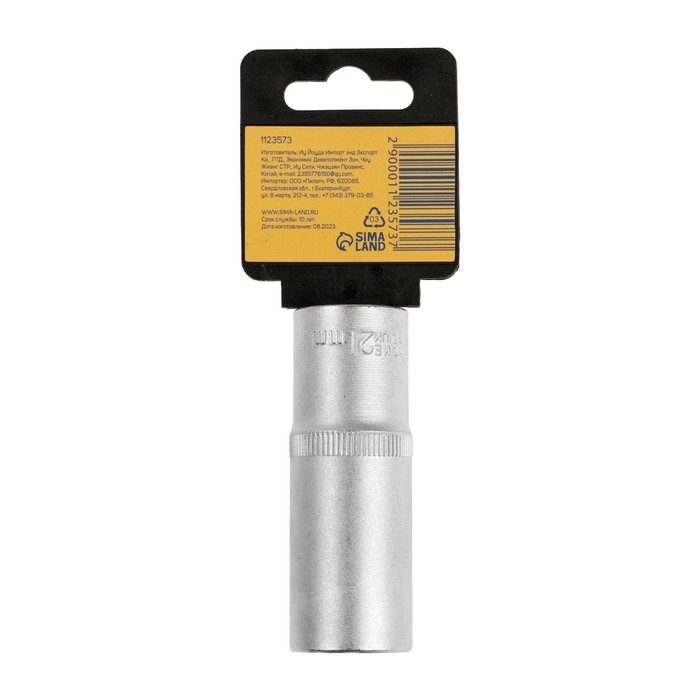 Головка торцевая шестигранная удлиненная ТУНДРА, под квадрат 1/2", 10 мм, CrV