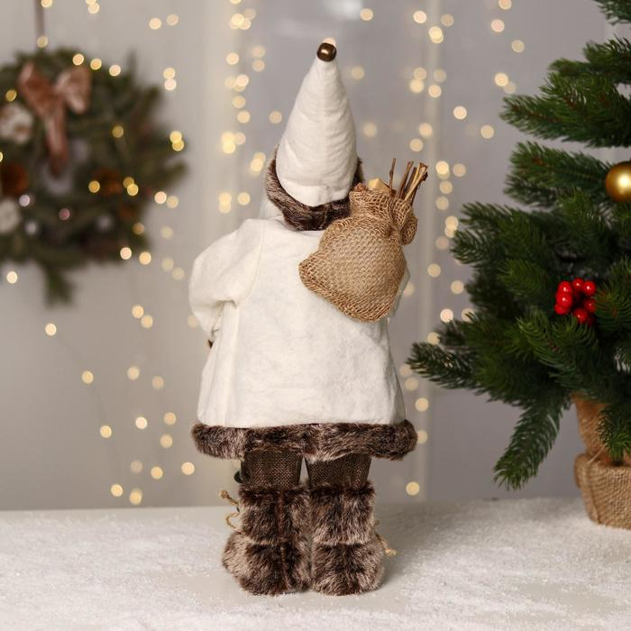 Дед Мороз "В белой шубке, в колпачке, с фонариком" двигается, 40 см