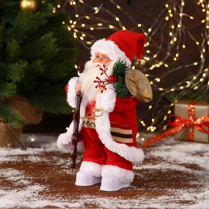 Дед Мороз "В костюмчике с орнаментом, с посохом и подарками" двигается, 30 см