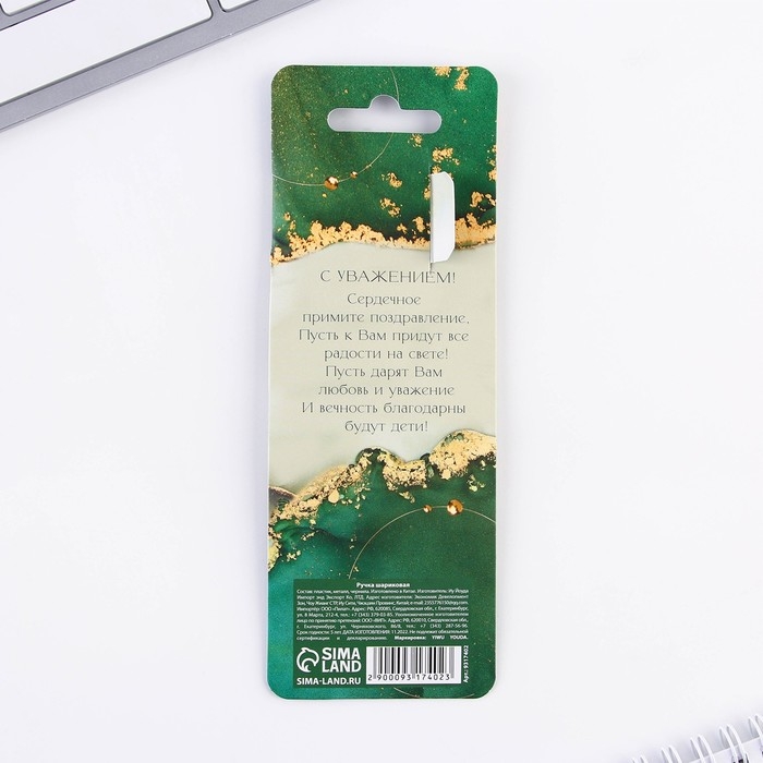 Ручка шариковая с фигурным клипом, пластик, 1.0 мм «С днём учителя»