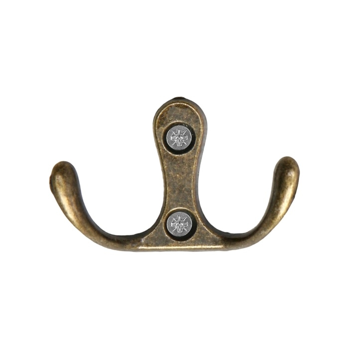 Крючок мебельный ТУНДРА TKD005, двухрожковый, бронза, 5 шт