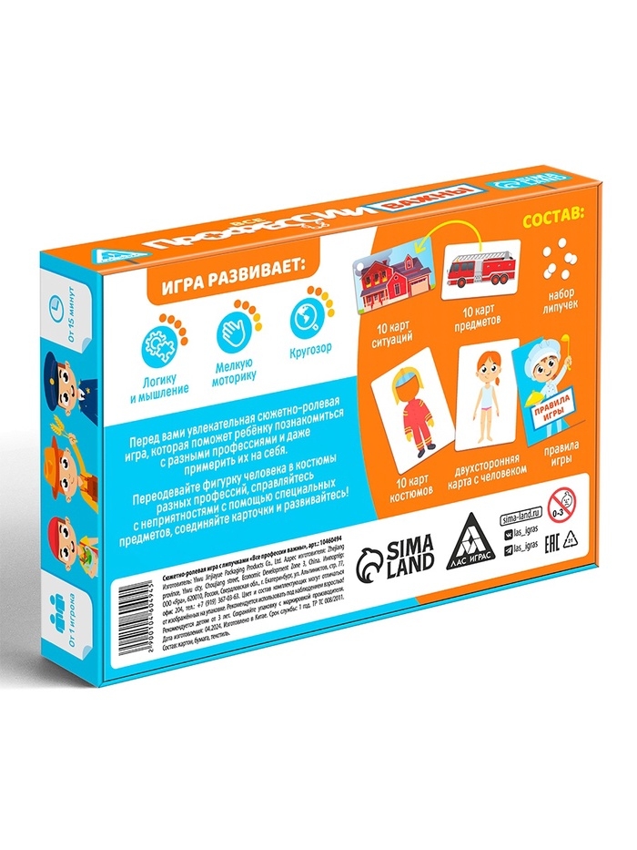 Цель игры: Познакомить ребенка с различными профессиями, их особенностями и важными качествами, необходимыми для успешной работы.