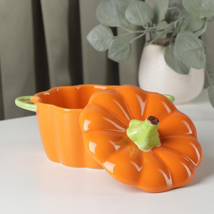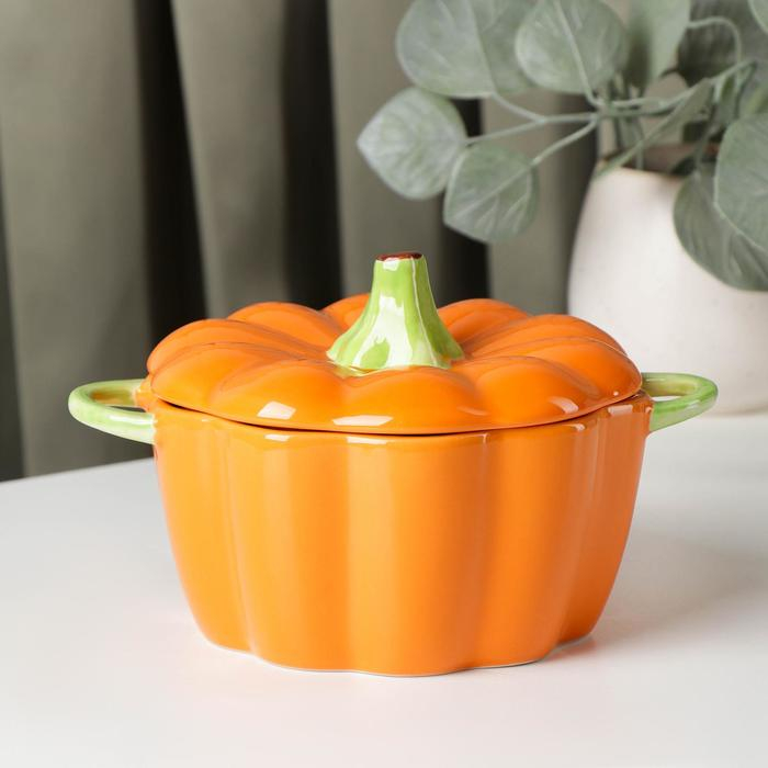 Горшочек из жаропрочной керамики для запекания «Тыква», 650 мл, 18,5×14×11 см, посуда для Хэллоуина, цвет оранжевый