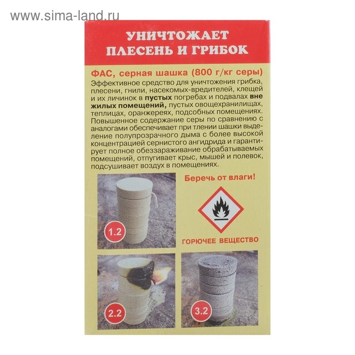 Серная шашка "Фас" профилактическая для дезинфекции погребов, подвалов, 300 г/16 таблеток