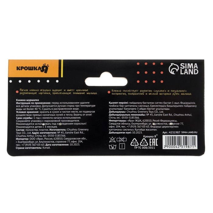 Книжка-шуршалка с погремушкой «Кто как говорит?», 8 стр.