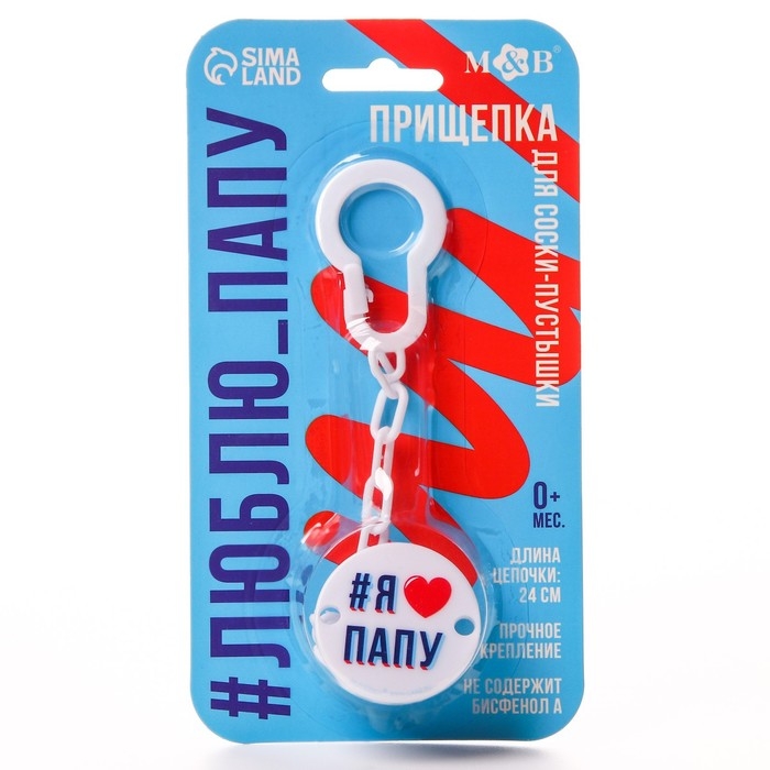 Держатель для соски - пустышки «Я люблю папу», на цепочке цвет белый