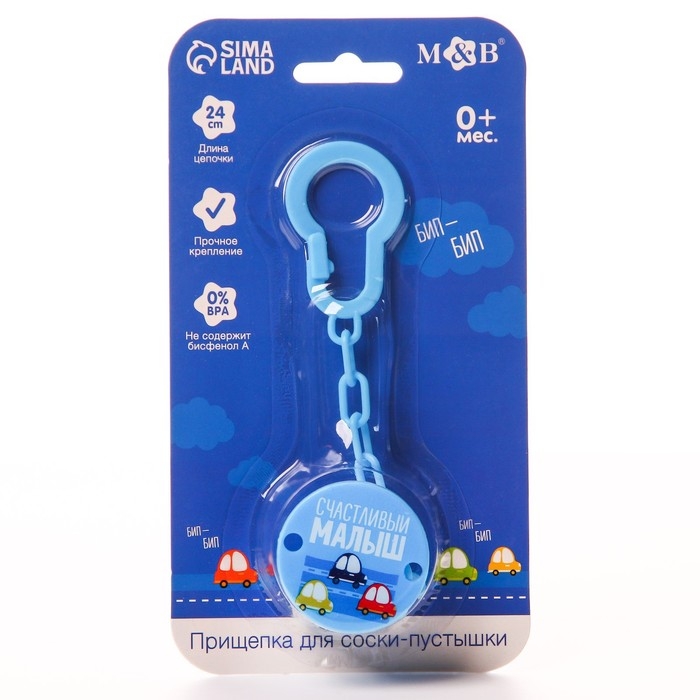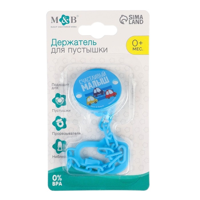 Держатель для соски - пустышки «Счастливый малыш», на цепочке, цвет синий