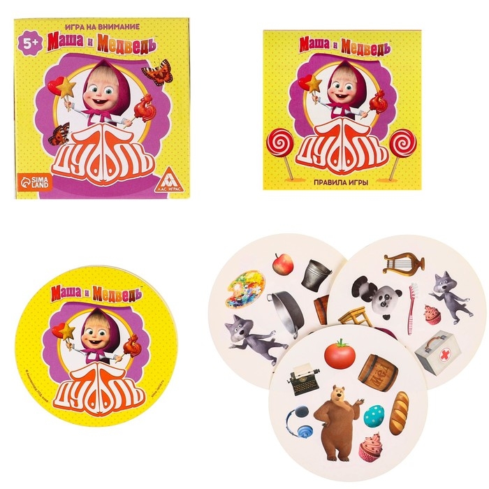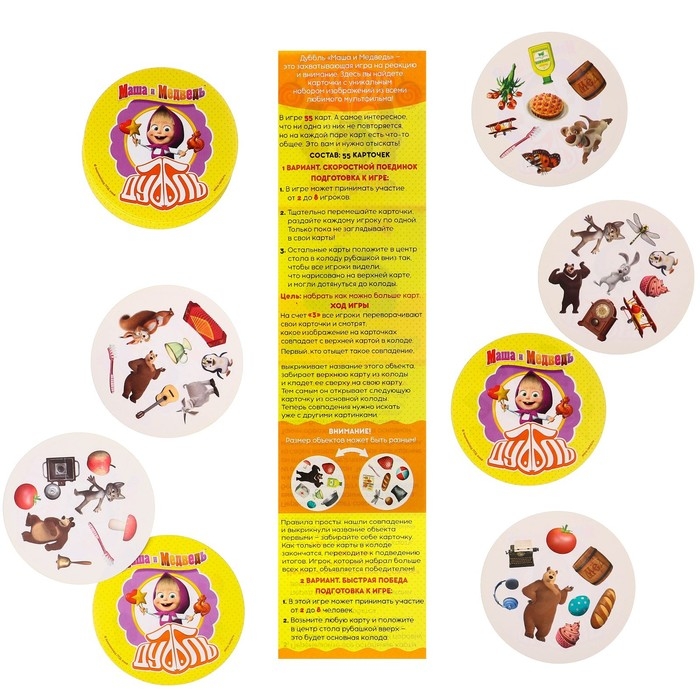 Карточная игра на скорость и реакцию "Дуббль. Смотри-хватай", 55 карт, 5+, Маша и Медведь